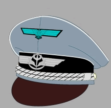 在设计上就跟吉翁其他同等级军官的军帽不同。颜色上采用比较少见的灰色和黑色,有双排银色颚纽装饰。帽章是MS机师专用章,但也是采用银色而不是一般的金色。