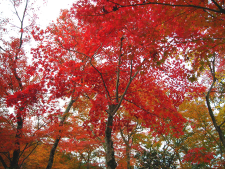 是说今天京大学园祭最后一日照例没课,和来福、大池田、中原一起去了趟岚山。这时节正好是红叶最美的时候。